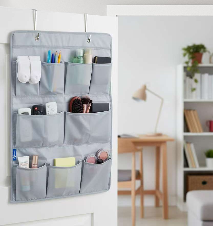 *Three-layer design with 9 pockets of various sizes for efficient organization *Easy installation with 2 metal hooks *Multi-purpose functionality *Simple and stylish design